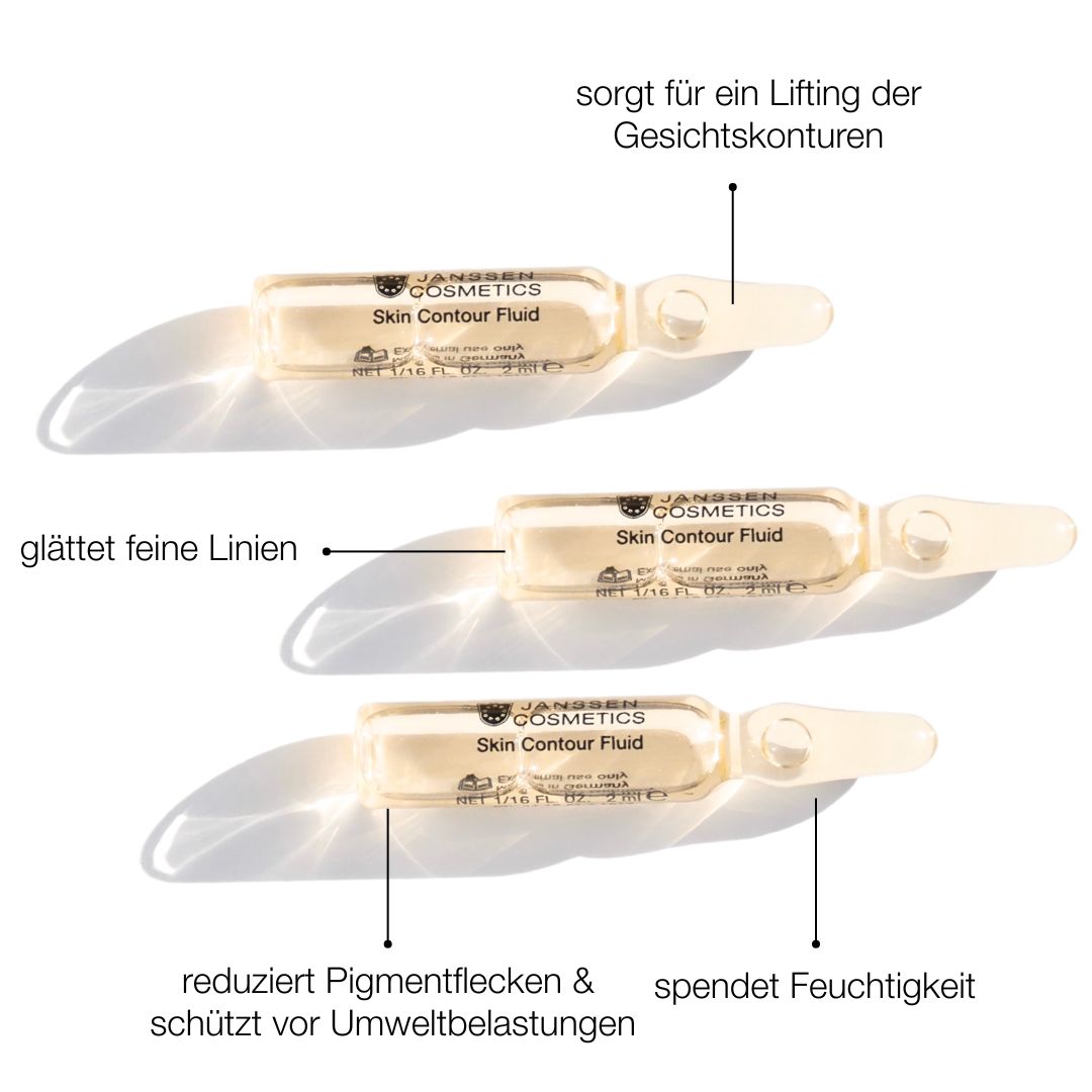 Das FLAWLESS – Skin Contour Fluid von Janssen Cosmetics ist eine intensive 7-Tage-Ampullenkur zur Hautstraffung und Konturverbesserung. Die innovative Formel mit elastinstimulierenden Peptiden und einem hochaktiven Pflanzenextrakt aus Sigesbeckia orientalis und Rabdosia rubescens (SORR) stärkt die Hautstruktur, reduziert Pigmentflecken und glättet feine Linien.